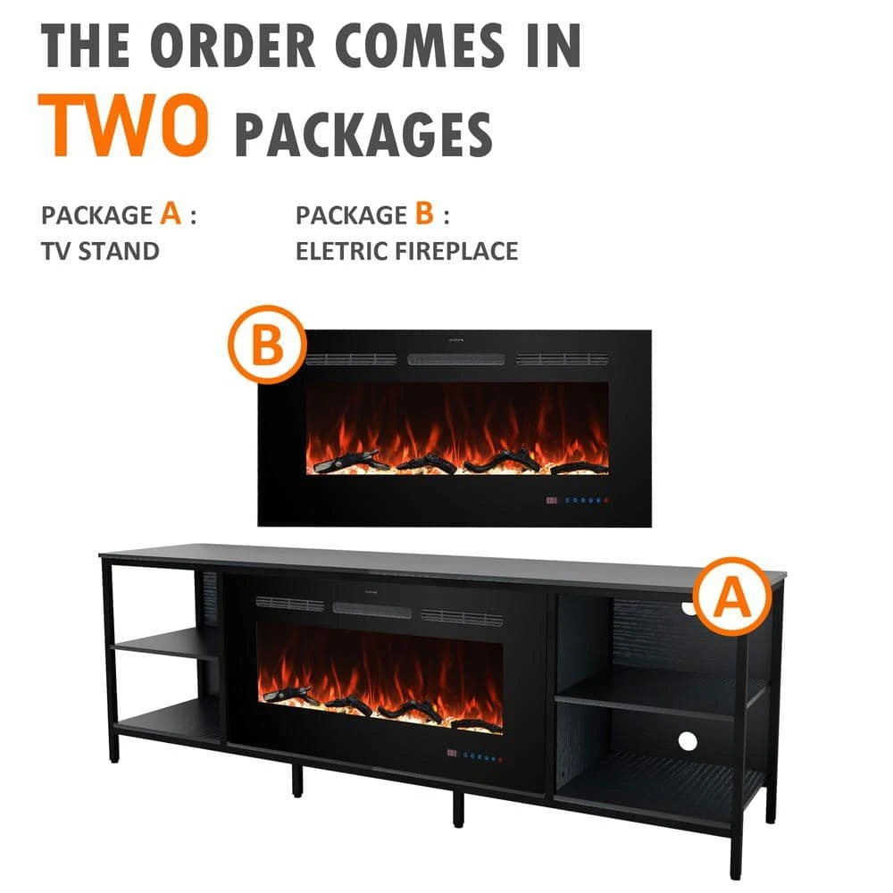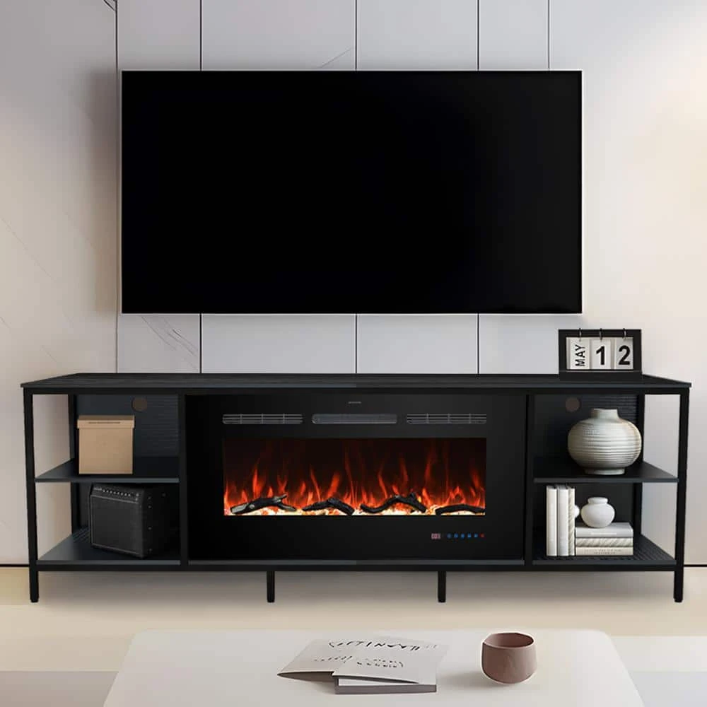 The centerpiece of this TV stand is the built in. electric fireplace, which adds warmth and ambiance to your room while providing a cozy atmosphere for relaxation or gatherings. with adjustable temperature settings and flame effects, you can customize the mood to suit any occasion. Constructed with high-quality P2 class particle board, known for its strength and resilience and featuring a sturdy powder-coated metal frame, this TV stand offers both stability and longevity. The fusion of these materials ensures a lasting investment that seamlessly blends into any home decor. Upgrade your viewing experience and create a welcoming focal point in your living room with this sophisticated piece of furniture.