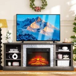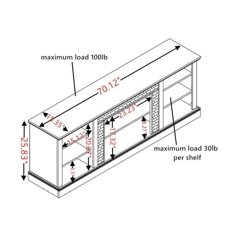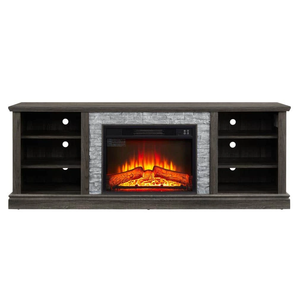 This 70-inch entertainment center combines functionality and style, fitting TVS up to 75 in. and featuring a realistic 23 in. electric fireplace with faux stacked stone for a classic look. With ample storage, cable management, and adjustable shelves, it keeps your space neat and organized while adding a cozy ambiance that can be enjoyed with or without heat. Its smooth, easy-to-clean surface completes the sophisticated design.