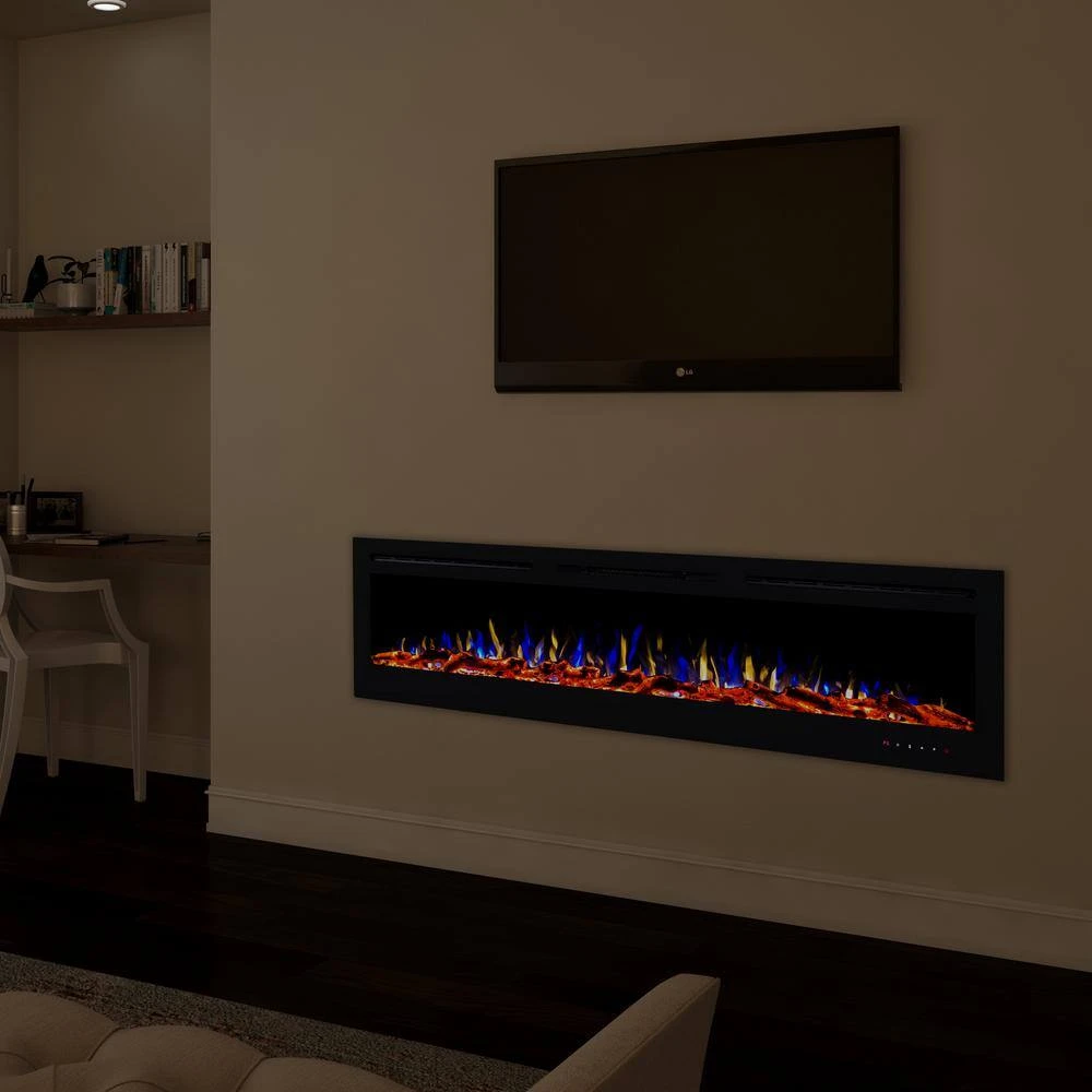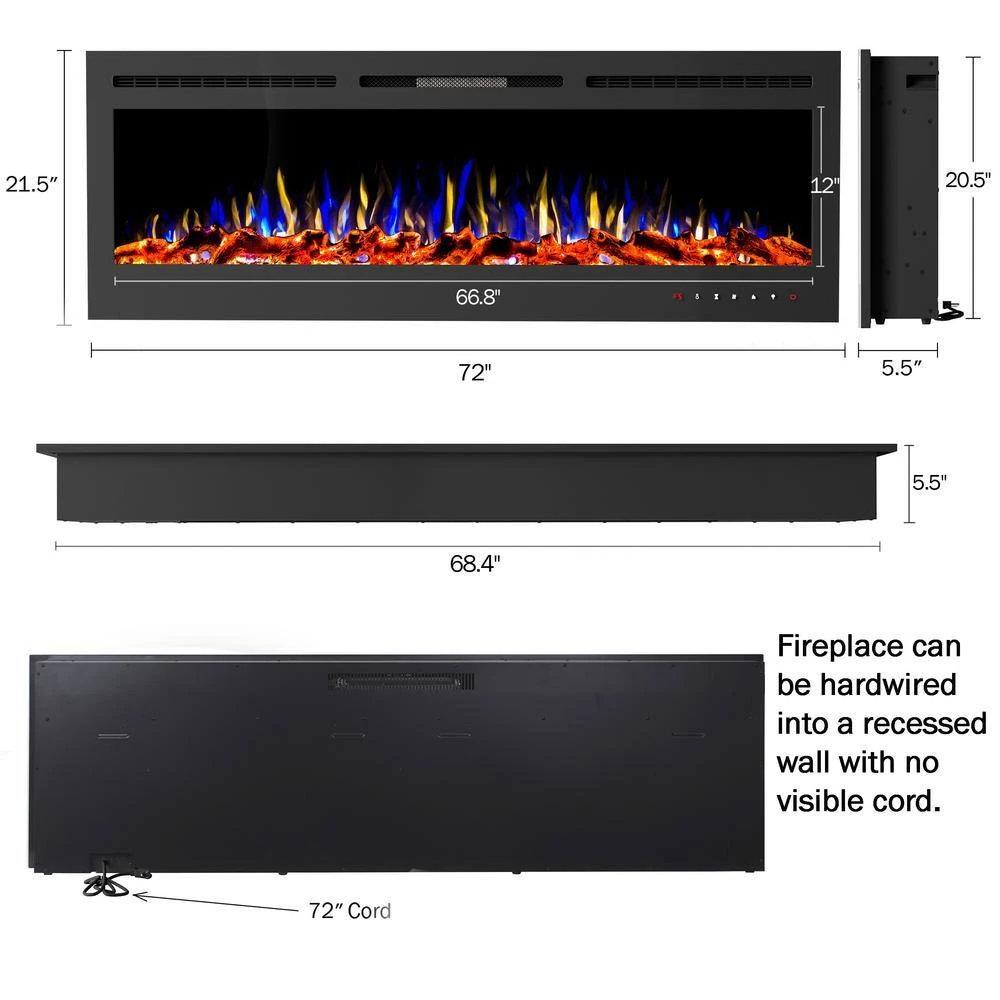 This modern fireplace combines exceptional style with versatile functionality, making it a must-have addition to your home. Designed for both recessed and wall-mounted installations, it offers a sleek, customizable appearance that enhances any space. With five adjustable brightness levels and multiple flame color options, you can create the ideal atmosphere to fit your mood or occasion. The remote-operated heat settings provide effortless control, ensuring warmth and comfort whenever you need it. Complete with all necessary installation hardware, this fireplace is not only practical but also a stunning focal point for your room.