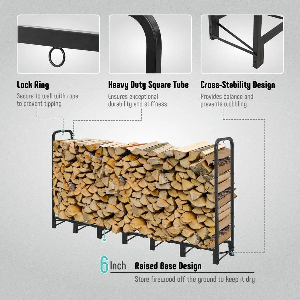 - Heavy Duty Tubular Steel Frame: Constructed with robust square tubular, the outdoor firewood rack offers optimal strength and durability, withstand rigors of outdoor use and heavy wood loads up to 1200 Lb. Perfect log rack to fit outdoors & indoors.