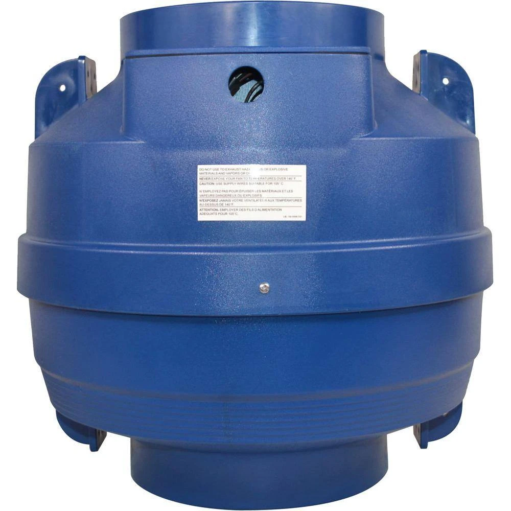 High volume and pressure 8 in. centrifugal fan has lower power consumption. UV protected thermal plastic resin housing construction. Uses include in-line duct boosting, ventilation, and hydroponic applications.