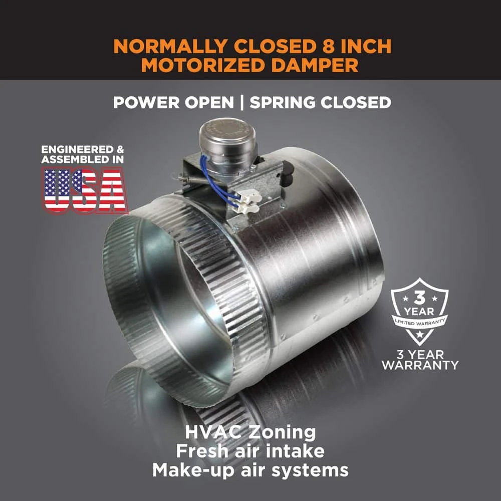 Zone master motorized adjustable damper controls airflow in an HVAC system or fresh air intake. Available as power closed/spring return or power open/spring return. Adjustable close or open position range stops. Easy to wire, 2-wire installation. Save energy by controlling airflow. High-efficiency impeller creates the negative pressure needed for sub-slab depressurization.