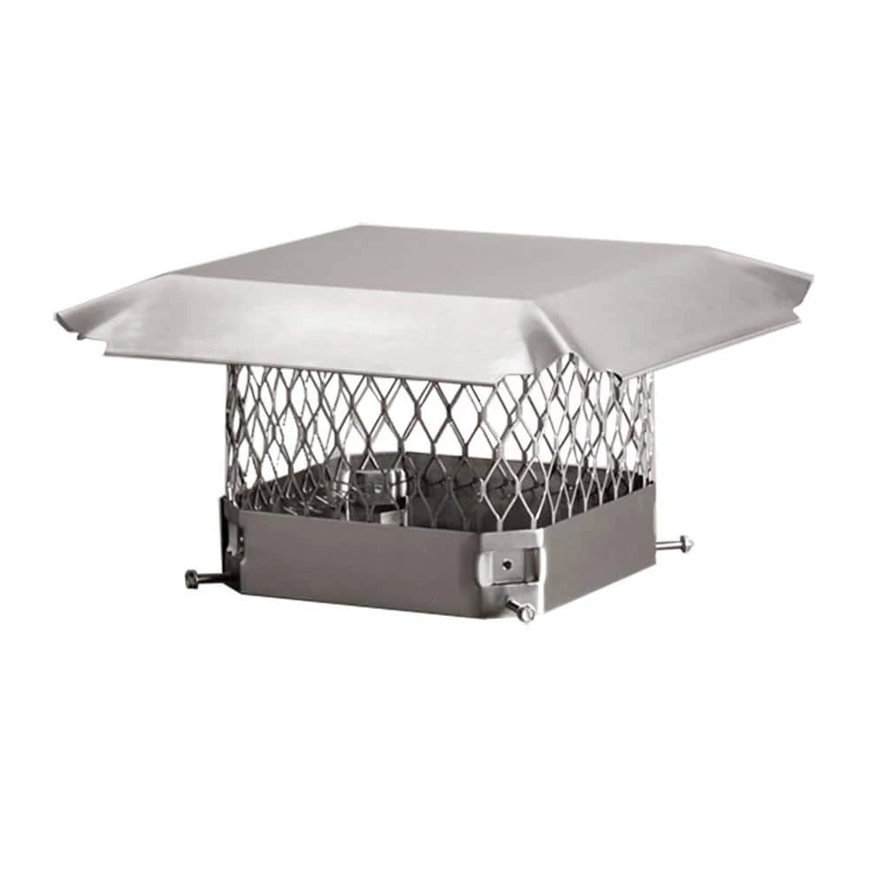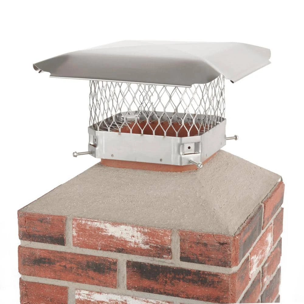 The Stainless Steel Draft King chimney cover by HY-C Company is constructed of 100% 304 stainless steel and built to withstand the toughest conditions. Ideal for oil, coal or heavy wood burners or for any application within 25 miles of a saltwater coast. High quality construction includes a 24-Gauge stainless steel hood with scalloped corners and roll-formed edges, 18-Gauge 3/4 in. expanded stainless steel mesh and 16-Gauge stainless steel base for extra strength. Using slotted hex-head bolts, the unique corner mounting attachment design of a Draft King chimney cover provides the securest possible fit to a masonry flue tile. Lifetime limited warranty.