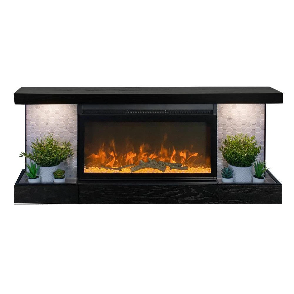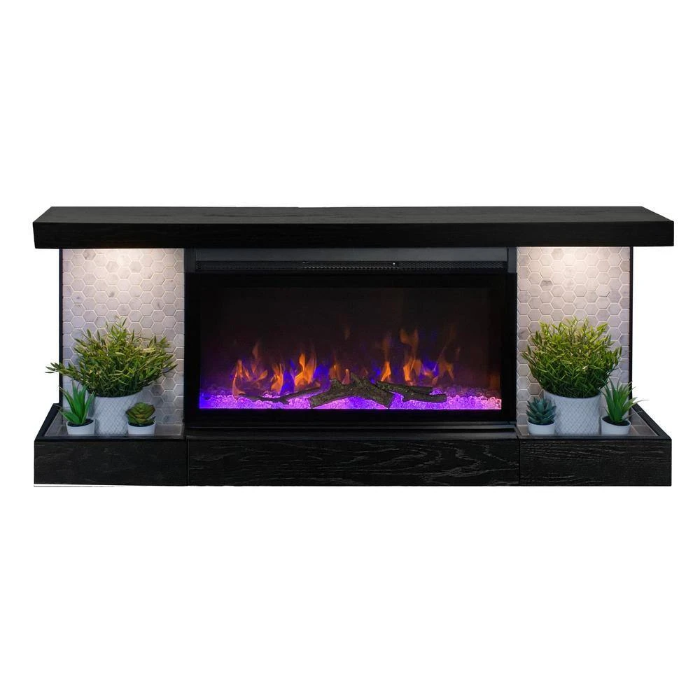 Upgrade your home with this sleek Designer-inspired electric fireplace with mantel shelf combination. Created to enhance any living space while maximizing floor space, it includes illuminated shelves for art display and a hidden drawer for storage. Unlike conventional black linear electric fireplaces, this mantel provides a unique alternative with ActiveFlame LED technology for customizable flame colors. Easily adjust heat and ambiance using the included remote, perfect for modern interiors and smaller settings.