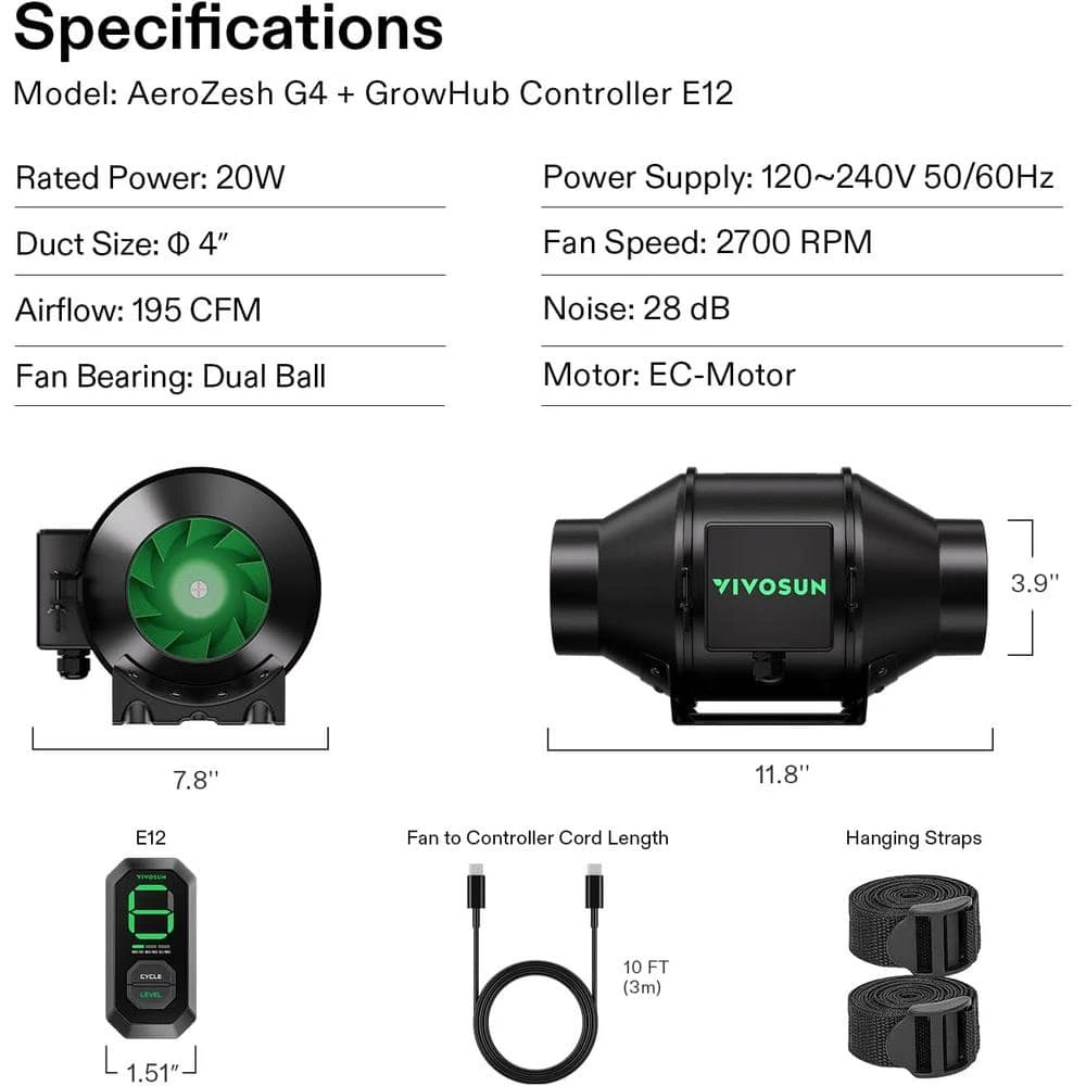 - Aerozesh G4 has powerful performance with airflow at 195 CFM to create optimal ventilation for your grow space