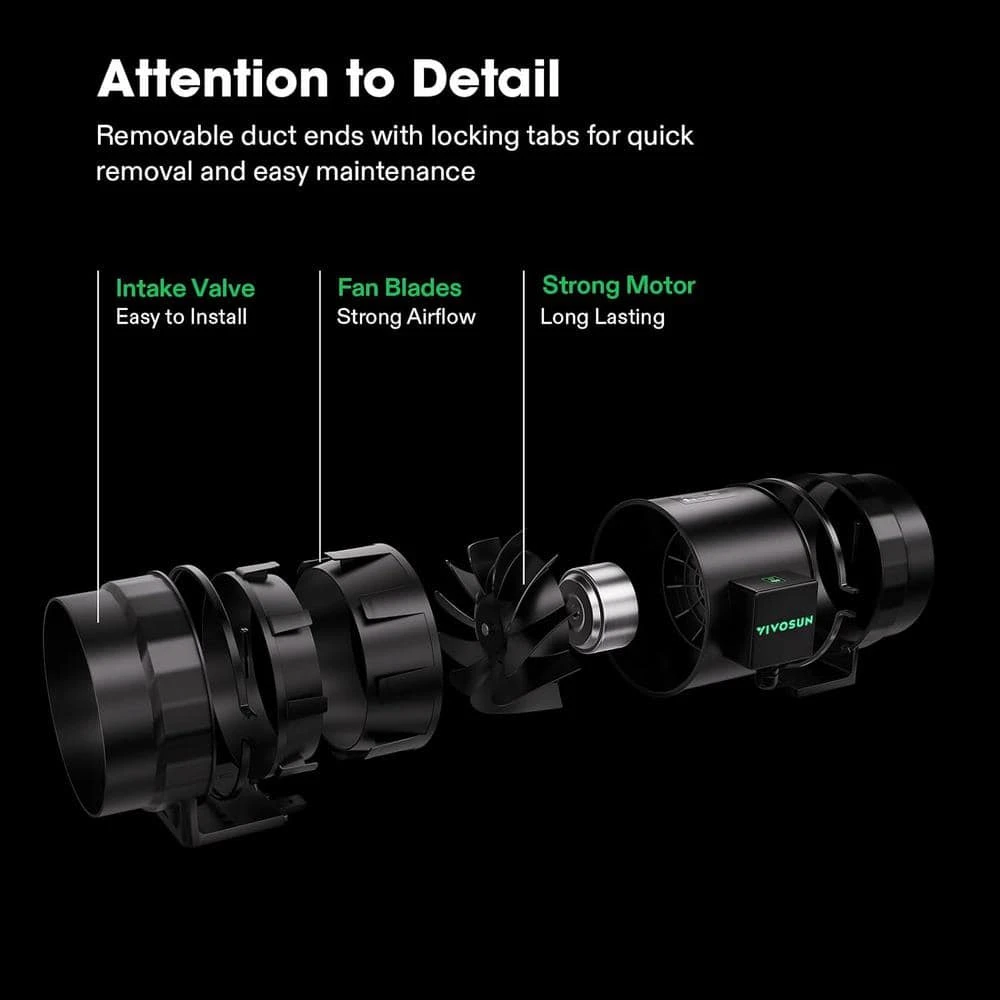 - Fan operates quietly at just 51 db and generates a strong 830 cfm of airflow that is fully adjustable to your grow space