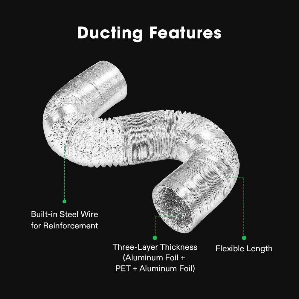 Allows for precise and easy control over the fan speed and airflow, stabilizing and optimizing your growth environment. Its PWM-controlled, mixed-flow design delivers air efficiently across long distances while saving energy. The controller features backup memory to retain the same setting after powering off/on; It enables creating automated wind speed cycles through 3 on/off timing modes to help conserve energy. Constructed from top-notch aluminum with a protected PET thermoplastic central layer, this ducting is strong, flexible and durable.