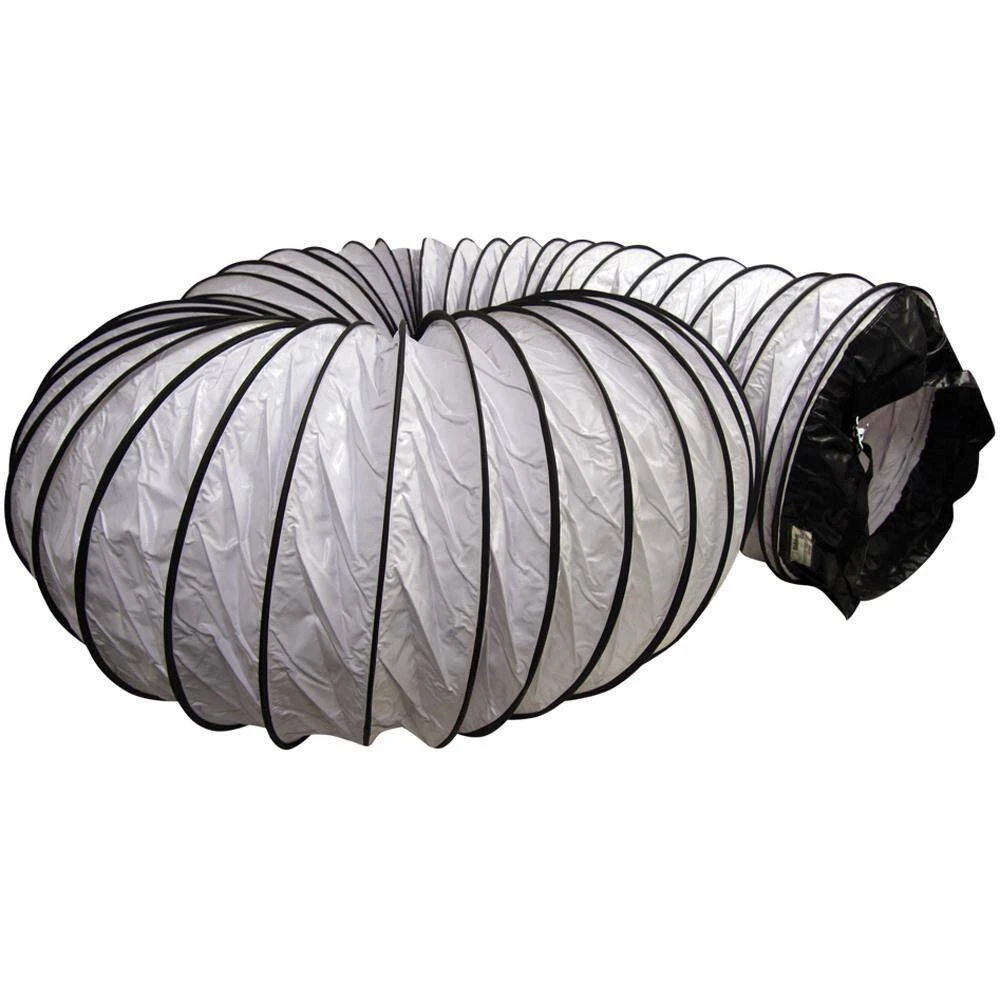 The Air Ventilator white is the ultimate flexible ducting solution for wide ranging air movement applications. Tough enough for industrial applications and affordable enough for residential use. Air Ventilator also has a temperature tolerance of -20° – +180° F. It can be used in anything from dehumidifier ducting to HVAC, portable air conditioning, smoke and hot air transportation, as well as all-purpose ventilation. These hoses are lightweight, constructed from a PVC-coated polyester fabric, making them exceptionally tough and durable. The body of the Air Ventilator is reinforced with a spring steel helix, which gives the duct work a higher degree of strength and helps it to keep its shape when flexed and put under pressure. The external wear strip combined with its rugged coating protects the hose from excessive wear when it is dragged across the ground and ensure that it remains effective for the long term. Coming in standard lengths of 25 ft. when fully stretched, Air Ventilator hoses are extremely flexible and compress easily. A 25 ft. hose can be retracted down to just 3 ft. for tight-bending contortion when in use which allows for easy transportation and storage the rest of the time. This hose comes in a variety of sizes ranging from a 4 in. inner diameter to a 24 in. inner diameter. Each end of the Air Ventilator is also fitted with belted cuffs, giving you a built-in quick and easy installation option without the need for clamps.