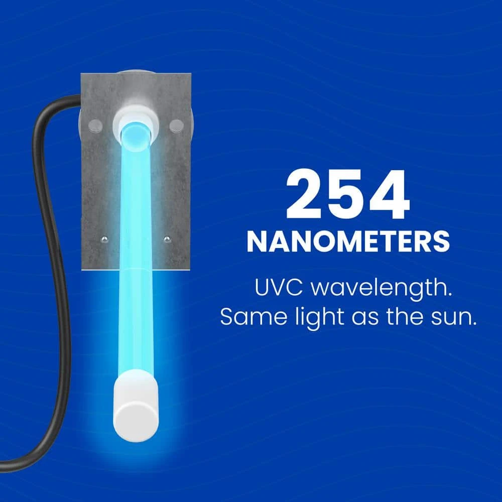 - Included in the box: 16 in. nominal length UVC (254 nm) lamp, white cotton gloves