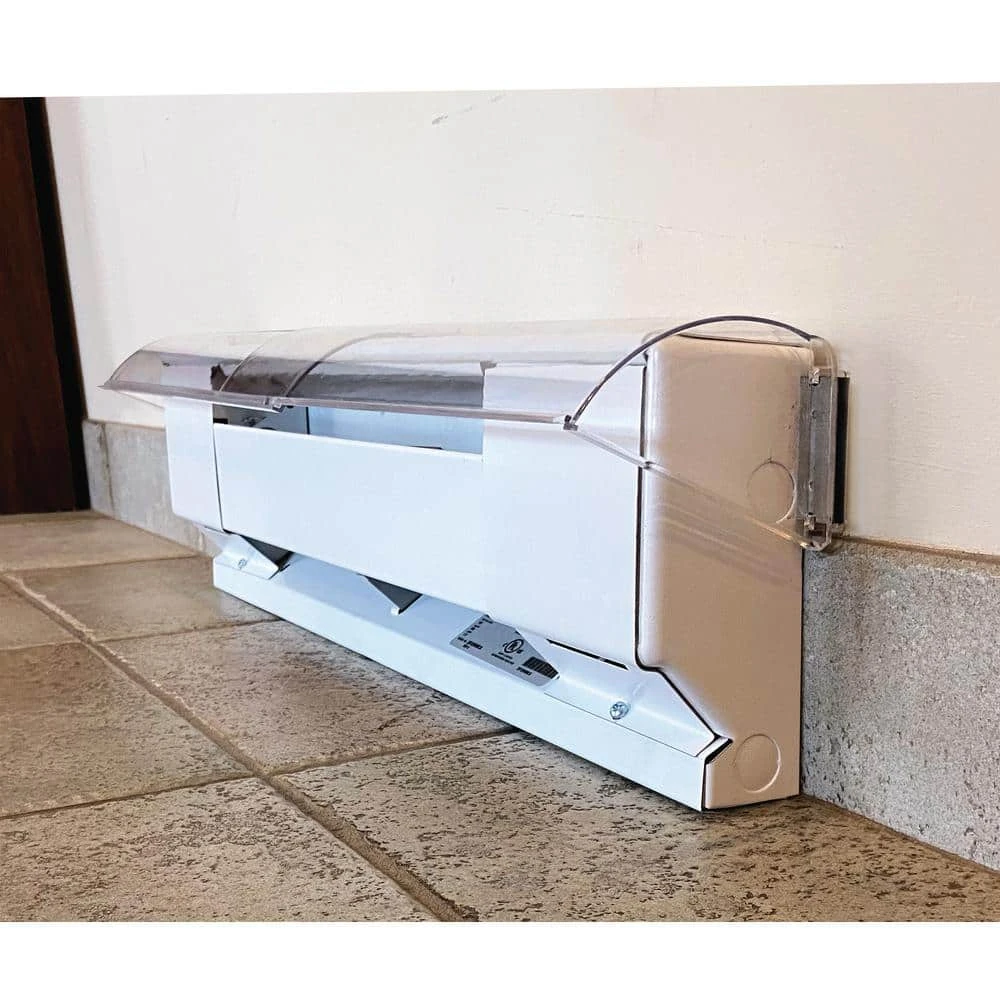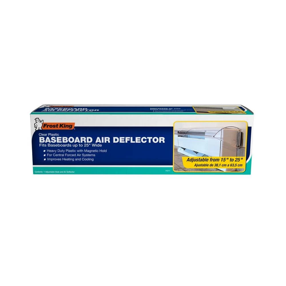 This is made from heavy-duty plastic. The Baseboard Air Deflector is used with central forced air heating and cooling systems. It is installed by a magnetic hold on baseboards up to 25 in. long. It will redirect Heat for better heating.