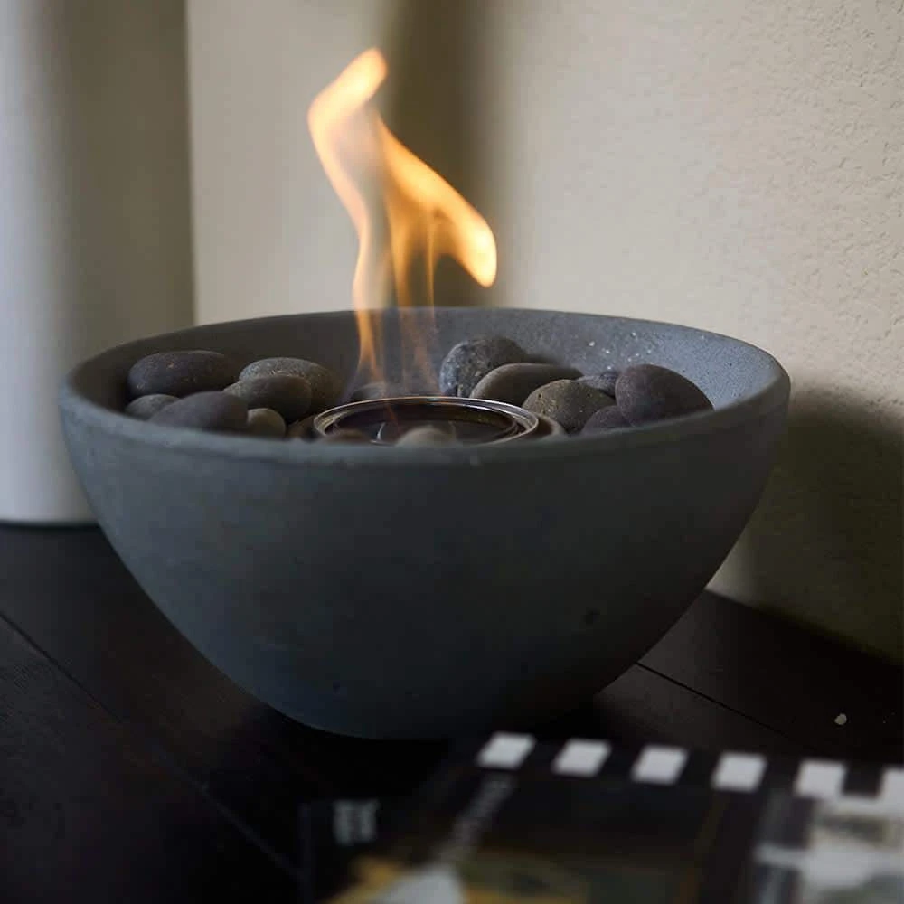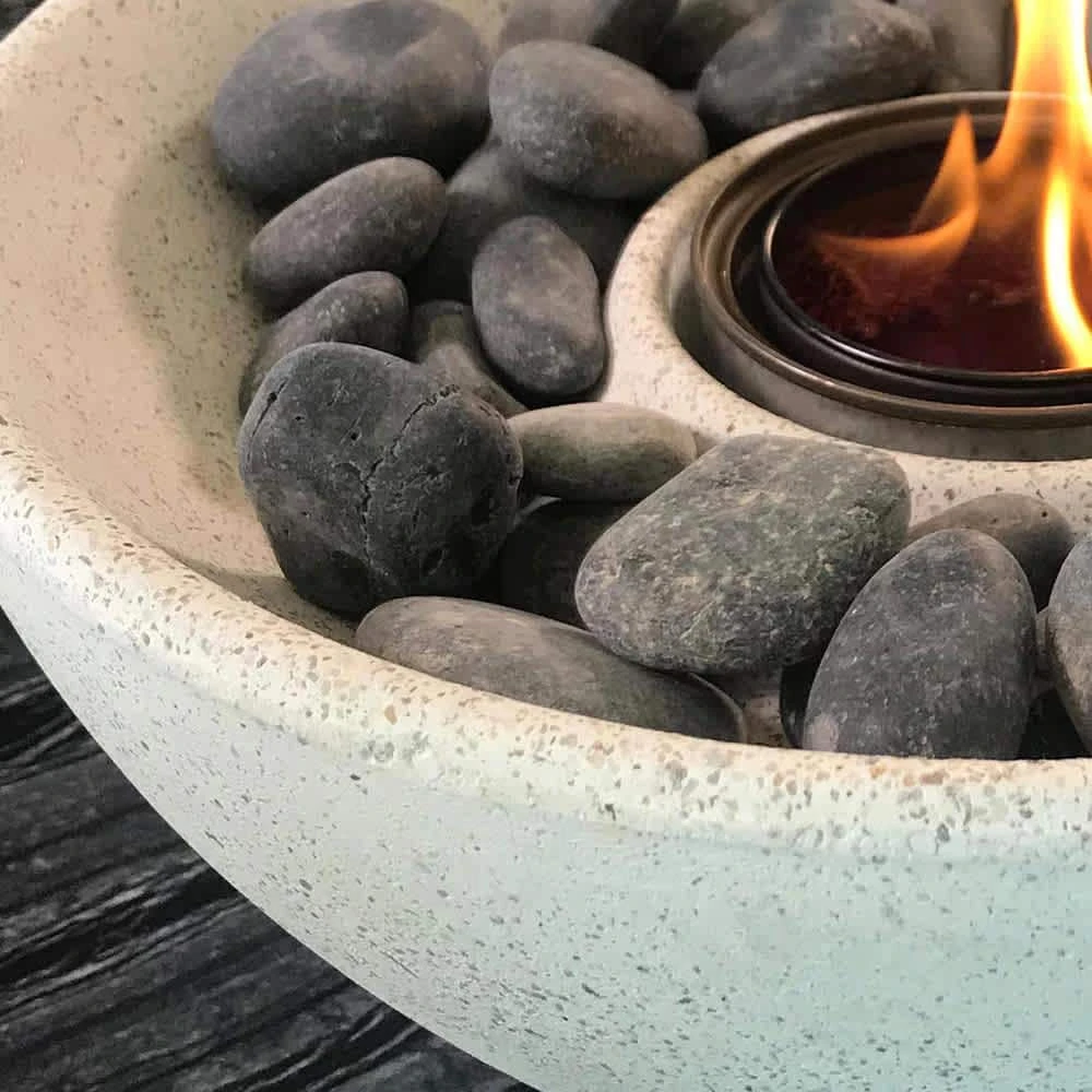 Enjoy serene, relaxing fire circle gatherings, soft patio lighting, and even S’mores night. The flickering, crackling flames of the classically styled Basin Fire Bowl create a mood-lifting fireplace experience anywhere, indoors and out. Fired by TerraFlame gel fuel for a clean, smoke-free fire. Designed for use with 1-gel fuel canister, the Basin Fire Bowl ships with river rocks for an added nature-inspired flourish, and comes with a protective cork liner on the bottom to avoid scratches.