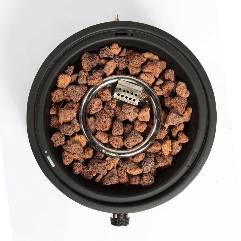 Bring instant warmth anywhere with this 15 in. Tabletop Fire Pit – 40,000 BTU of portable power in a sleek, compact design. Weighing just 12.3 lbs. this round steel fire pit is perfect for balconies, small patios, and camping trips, delivering powerful heat without the bulk. The 1-touch ignition lights up instantly, while lava rocks enhance heat distribution and create mesmerizing flames. Includes everything you need – from the protective cover to adjustable regulator – making it the ultimate space-saving outdoor heater for cozy nights under the stars.