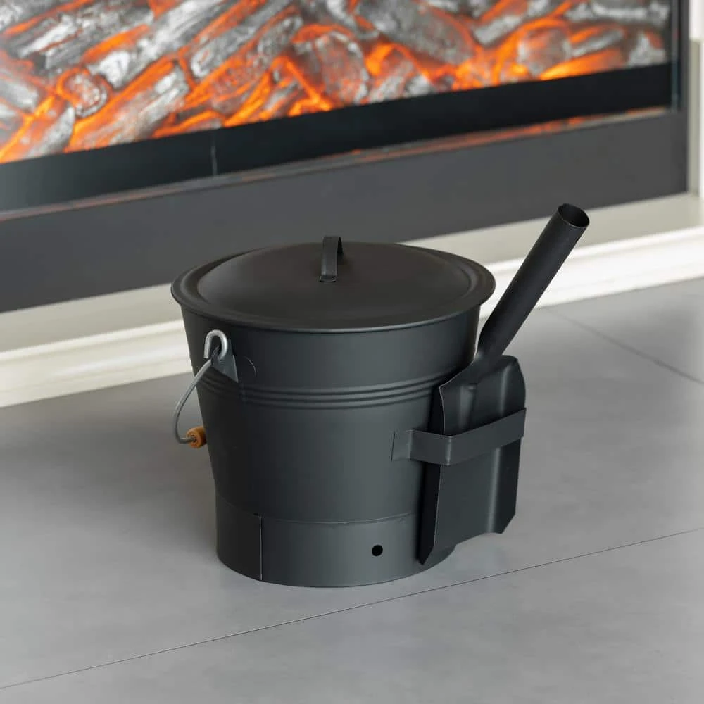 The ash bucket with shovel keeps your fireplace clear of ashes. This bucket holds plenty of ash from past fires and the included shovel makes cleanup simple. A sturdy metal handle offers an easy way to carry the item and a wooden grip at the top to keeps it comfortable.