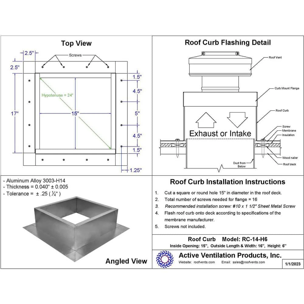 AVP’s roof curbs are perfricated allowing for quick and easy installation. Save time and money with AVP’s lightweight, heavy-gauge aluminum roof curbs. It’s true; you don’t have to build your own heavy wooden curbs anymore. A Roof Curb is a metal frame used as a platform for mounting a roof vent or fan. As a result, this platform will provide additional height allowing for installation in all climate zones. Proper installation ensures that the accessory has a level platform for attachment. They can also work as a hatch allowing for easy access to ductwork, HVAC units or maintenance in the attic below.