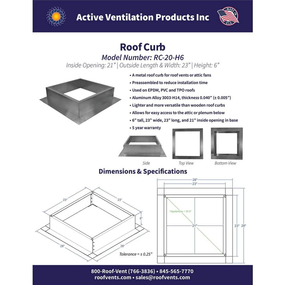 AVP’s roof curbs are perfricated allowing for quick and easy installation. Save time and money with AVP’s lightweight, heavy-gauge aluminum roof curbs. It’s true. you don’t have to build your own heavy wooden curbs anymore. A Roof Curb is a metal frame used as a platform for mounting a roof vent or fan. As a result, this platform will provide additional height allowing for installation in all climate zones. Proper installation ensures that the accessory has a level platform for attachment. They can also work as a hatch allowing for easy access to ductwork, HVAC units or maintenance in the attic below.