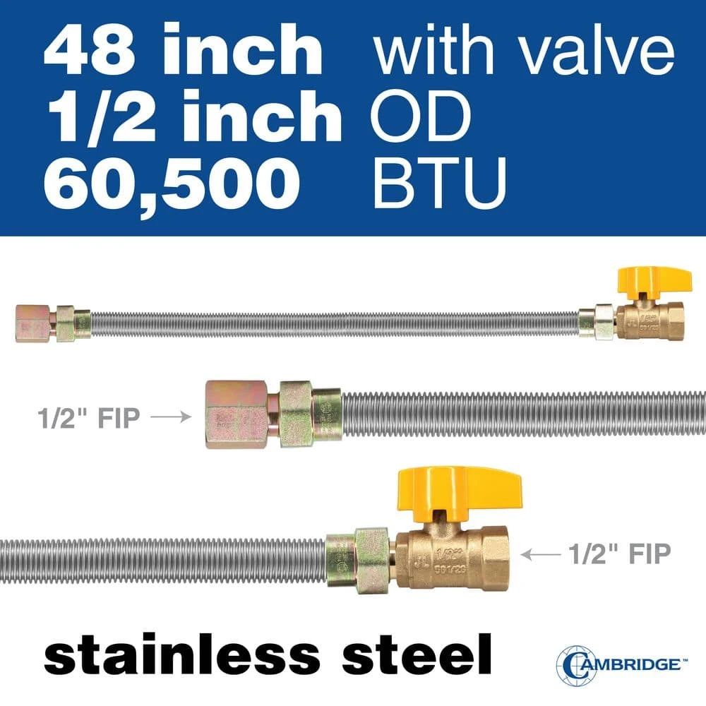 Model 200377 C-GC-121212 FF-48V Gas Connector – 48 in. Long, 1/2 in. OD (3/8 in. ID), ½