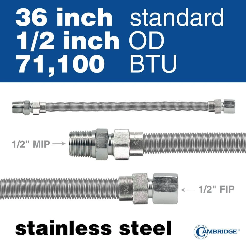 Model 111643 C-GC-121212 MF-36 Gas Connector – 36 in. Long, 1/2 in. OD (3/8 in. ID), ½
