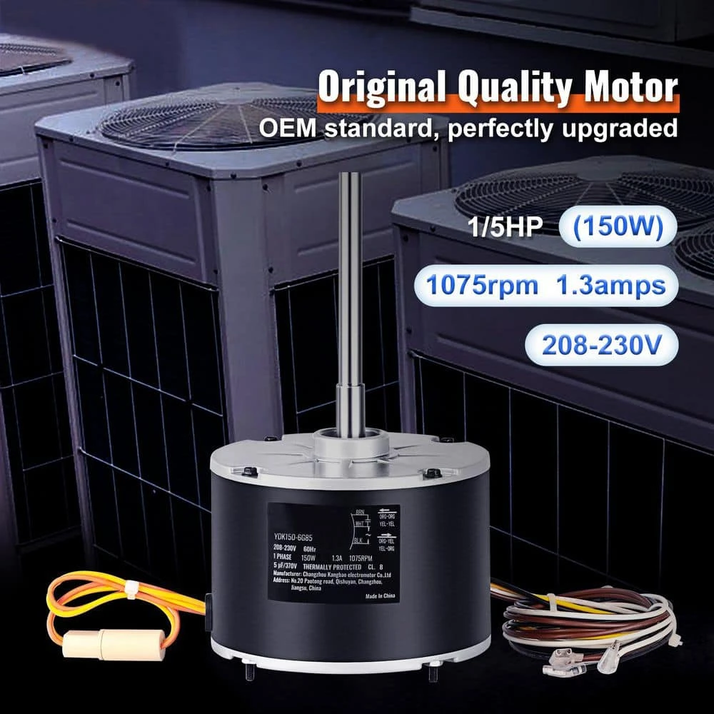 - Perfect fit: your condenser fan motor may be at fault if your ac system is underperforming upgrade to our high-powered replacement motor boasting 1/5hp (150 W) horsepower, 1075 rpm rotating speed, and 13amps (208-230V) current it’s compatible with models like k55hxjkl-2918, 51-23055-11 get ready to chill out with our top-notch motor