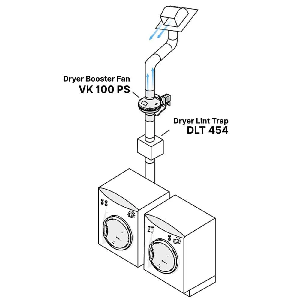 - A dryer lint trap (DLT 454) can be installed before the dryer booster fan to reduce lint build up and reduce booster fan maintenance