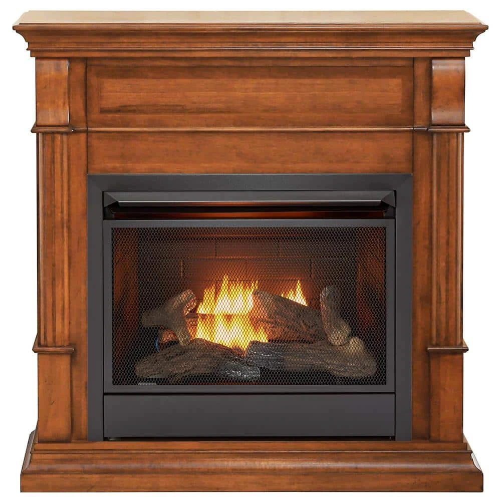 The Duluth Forge Dual Fuel Ventless Fireplace is an excellent alternative to traditional wood fireplaces. Since they do not require an outside duct or chimney, they can be placed almost anywhere within your home. These economical, efficient fireplace systems provide your family with the supplemental heat you seek, without sacrificing style or ambiance. The product is made to produce up to 26,000 BTU of heat, enough to heat 1,350 sq. ft. of living space. Our state-of-the-art ventless fireplace insert features a remote control, battery assisted ignition, and much more. The fireplace mantel has been carefully designed and created in an apple spice furniture grade finish that accents its quality and excellence. The fireplace insert provides a beautiful and realistic flame pattern with realistic fiber ceramic logs for a stunning experience and impression of real wood burning fireplace to your home.