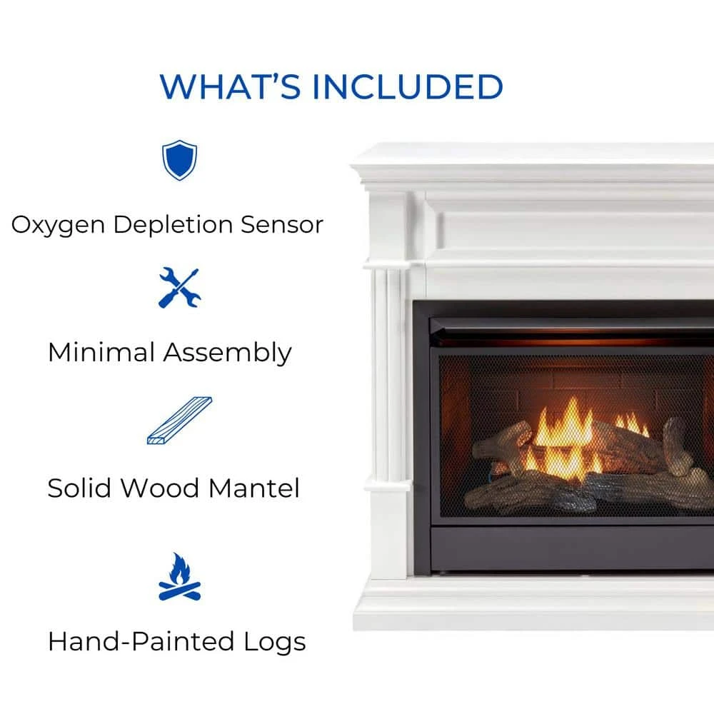 This Duluth Forge Vent-Free Fireplace is simply a beautiful and versatile piece of quality furniture. This Fireplace can live in an antique, modern, bohemian, industrial, minimal, or any other types of homes. The fireplace has been carefully designed and created in an antique white furniture grade finish that accents its quality and excellence. Includes many features like Oxygen Depletion Sensor with automatic shut-off, battery assisted piezo ignition, and much more. Using Natural Gas or Liquid Propane, the Duluth Forge Ventless Fireplace radiates 26,000 BTU of heat, enough to heat 1,350 sq. ft. of space.