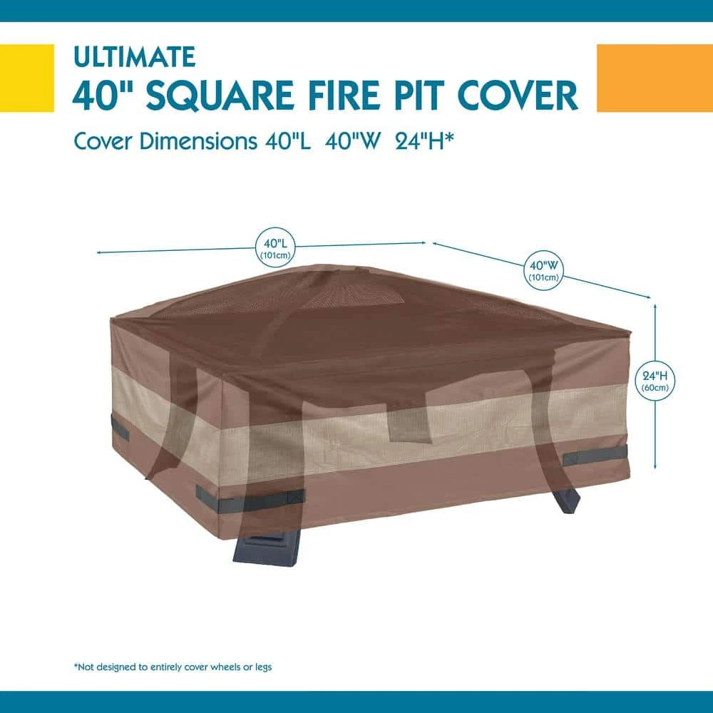 Ideal for use in harsh weather and high wind conditions, Ultimate covers are designed to protect fire pits from dust, dirt, sun, rain and heavy snow. Manufactured using a combination of high-strength polyester top panel, plus innovative, multi-layer, breathable side panels to help eliminate condensation. The multi-layer, breathable side panels eliminates the need for vents and provides additional cover height, unlike shorter competitive covers which offer less protection. High-strength polyester base for added durability. Mocha Cappuccino color. Two-year limited warranty has you covered. Migrate to Duck Covers today!