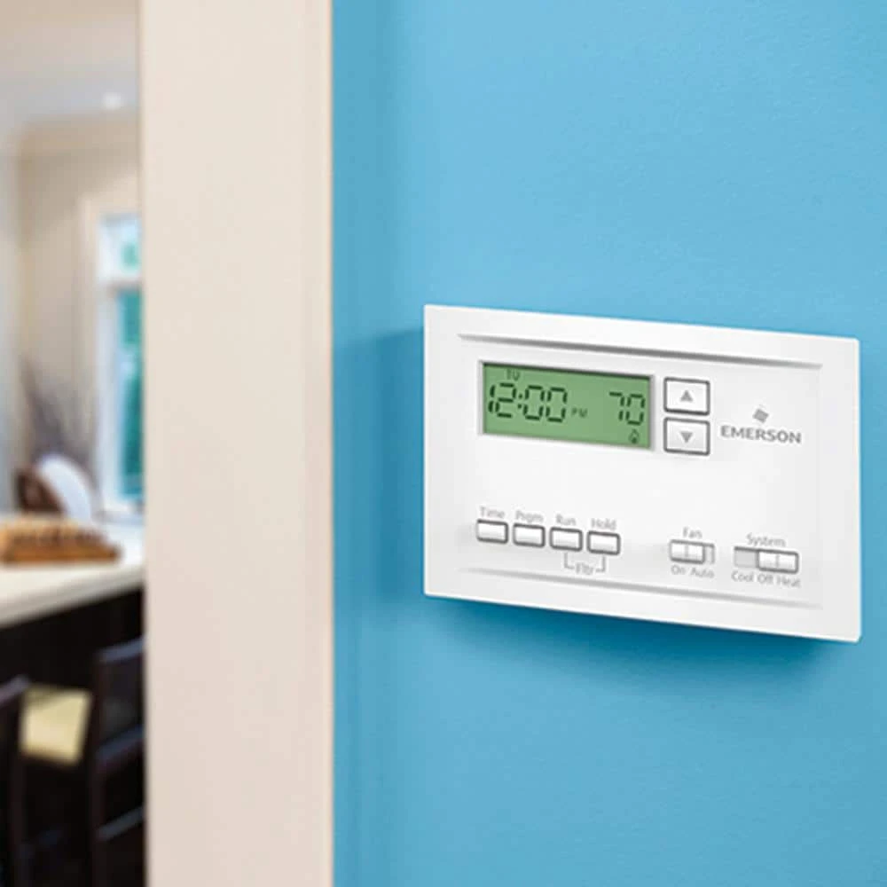The Emerson P210 thermostat is a 5-1-1 day programmable thermostat that allows you set convenient weekday / Saturday and Sunday schedules. The easy DIY install wizard guides you through set-up, programming and operation. This thermostat features backlit display and precise temperature control of plus/minus 1°F. Not compatible with electric baseboard heat and some other systems.