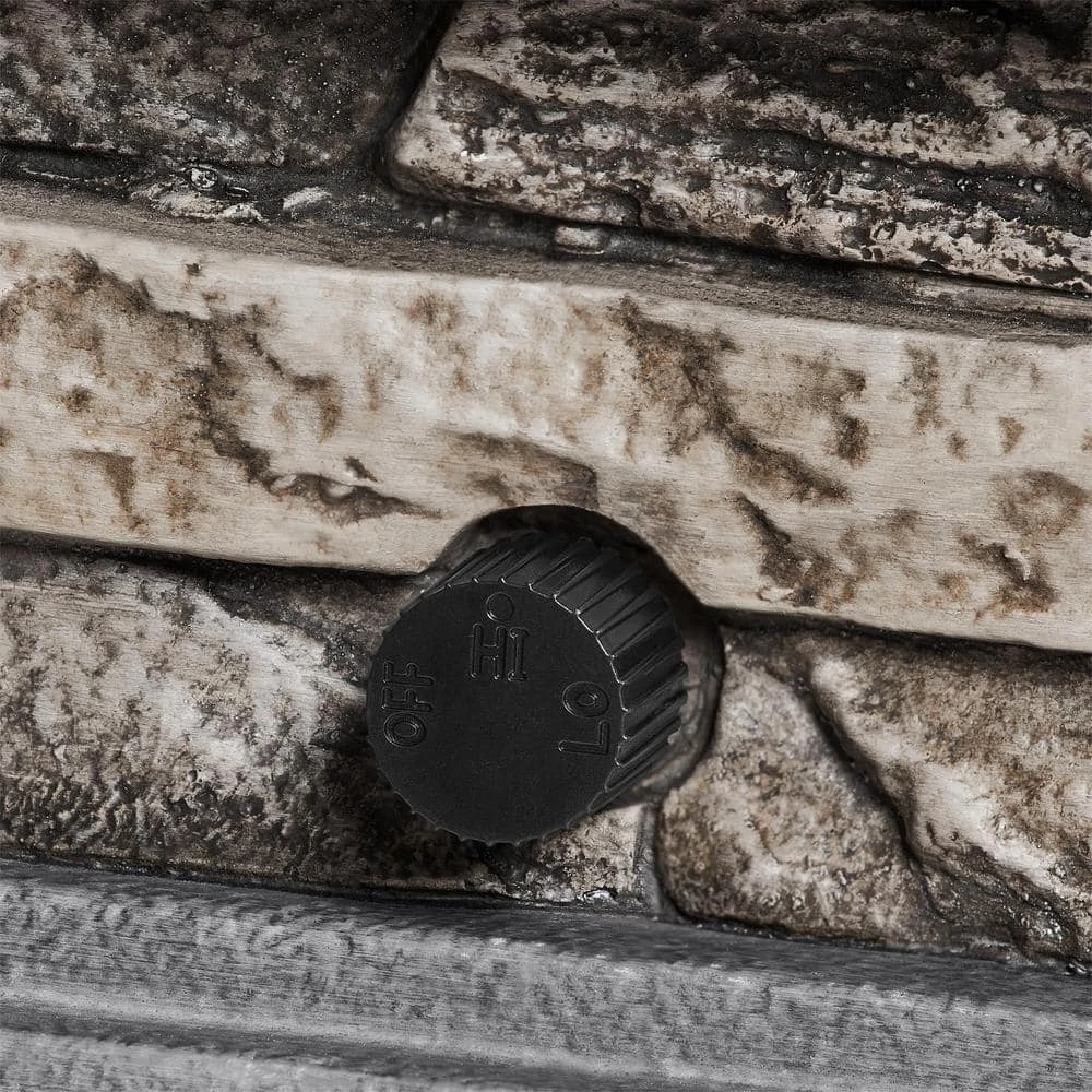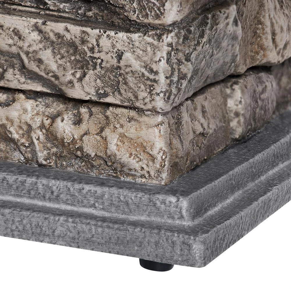 - Crafted of Envirostone a fireproof material creating the faux stone base and tabletop rim