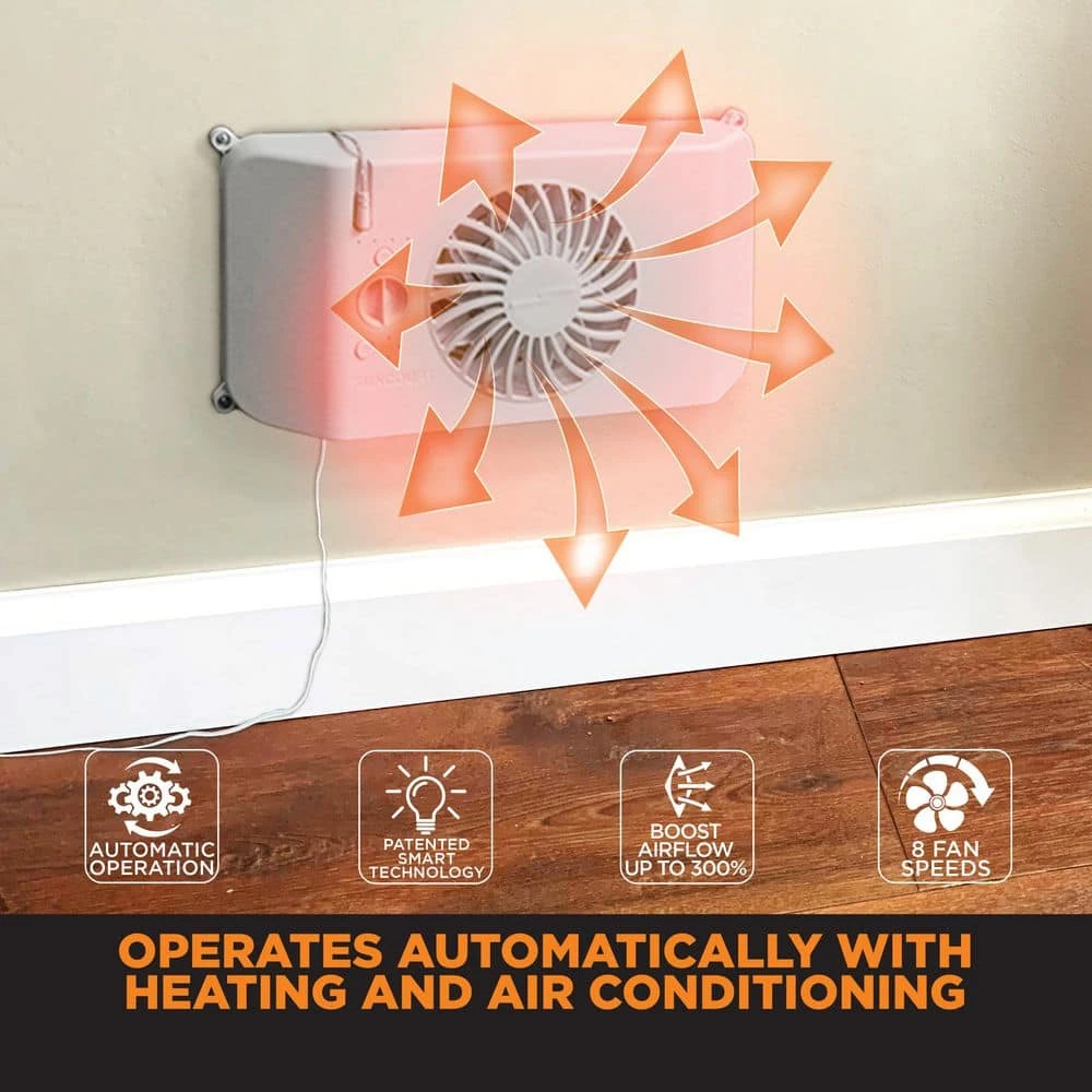 The Suncourt equalizer EZ8 smart register booster fan quietly boosts heated or cooled air to a room to improve circulation and comfort. The Equalizer’s powerful fan works to pull extra air out of weak registers, increasing airflow by up to 300%. It is a simple and safe solution for rooms that are too hot or too cold.