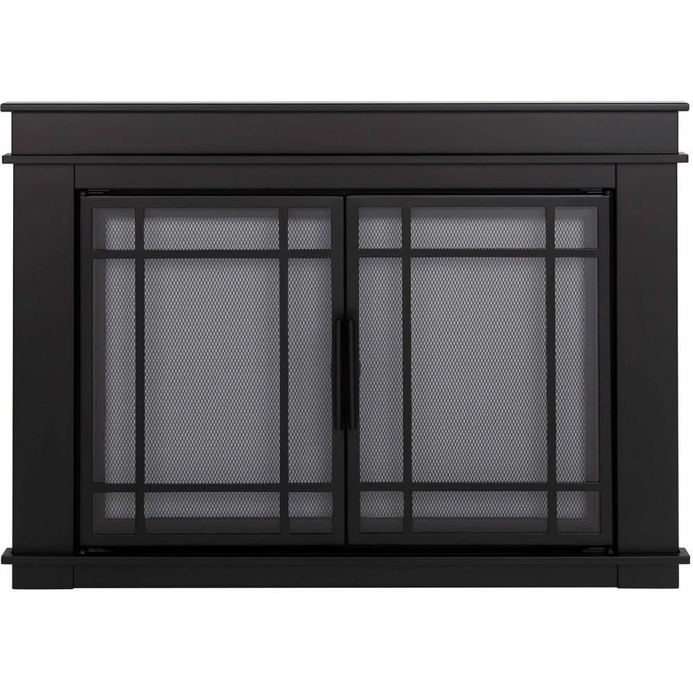 The Pleasant Hearth Filmore Fireplace Glass Door Collection is a beautiful, black, cabinet style, one-piece frame. When installed, the fireplace glass door enhances the appearance of your family’s indoor, wood-burning, traditional masonry fireplace hearth. All Pleasant Hearth Fireplace Glass Door sets are designed for masonry fireplaces only and are not compatible with prefabricated fireplaces – see our Sizing Guide for more details. The smoked 3/16-in tempered glass doors must stay open while the fire is burning, and the built-in mesh firescreen panels act as a barrier to help contain embers. Both the glass doors and mesh panels have easy-catch magnets to help keep them closed. The glass doors can help you save energy year-round – when closed, they prevent AC and heat loss through the chimney by up to 90%. The hidden damper knob at the bottom of the firescreen provides additional air flow to feed the fire for bigger, longer-lasting flames. Closed fireplace glass door sets also prevent cold chimney downdrafts from entering your home and keep pets and children out of fireplace soot. These fireplace glass doors are surface mounted flat against the fire place opening, allowing the doors to open fully to provide an incredible view of your fire from anywhere in the room. Pleasant Hearth has guided instructions on how to install your new fireplace glass doors in both the Product Manual and Installation Video.