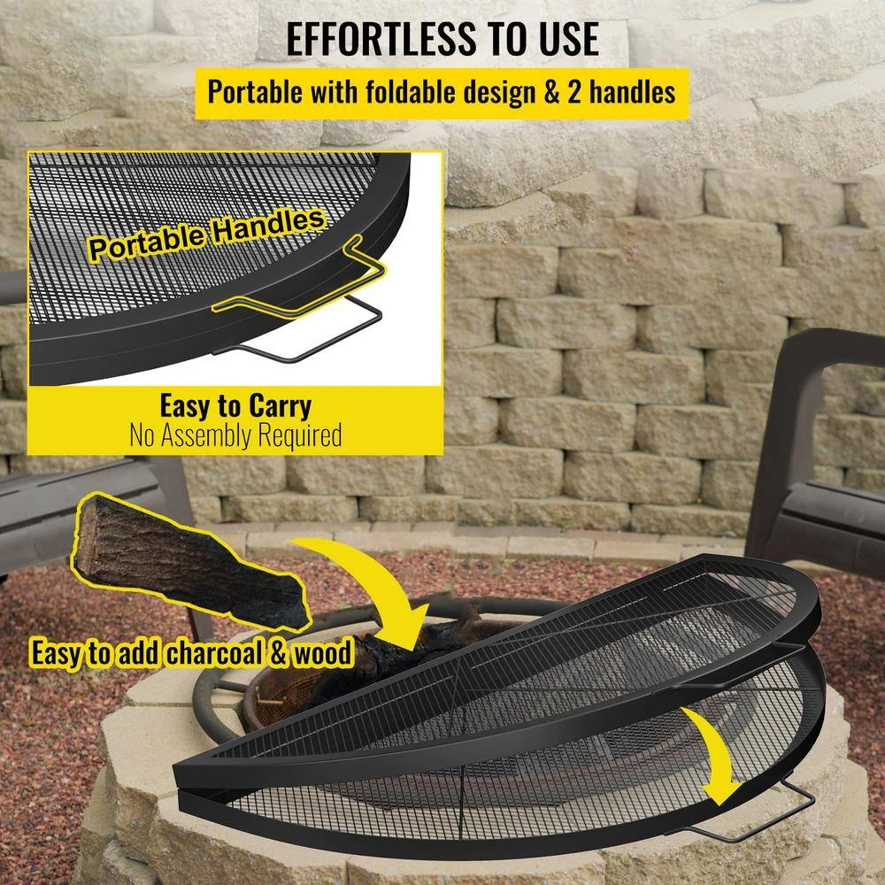 The VEVOR cooking grate is made of solid steel construction with a heat-proof black coating, which will bring you an extraordinary grilling experience. This fire pit grate is foldable and features comfortable handles, making it portable and compact. Also, the extra-large cooking area of 30 in. x 30 in. is suitable for the whole big family or friend gatherings. Get ready to enjoy your delicious food with our cooking grate and create an unforgettable trip.