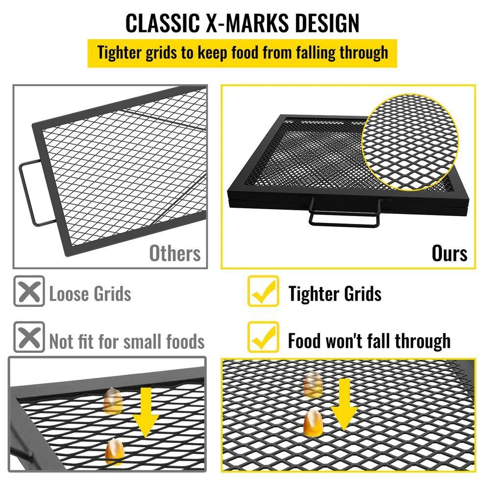 - Tight grid design: unlike other fire pit grates, ours has a smaller gap pattern, so you don’t have to worry about food through the holes, in addition, the