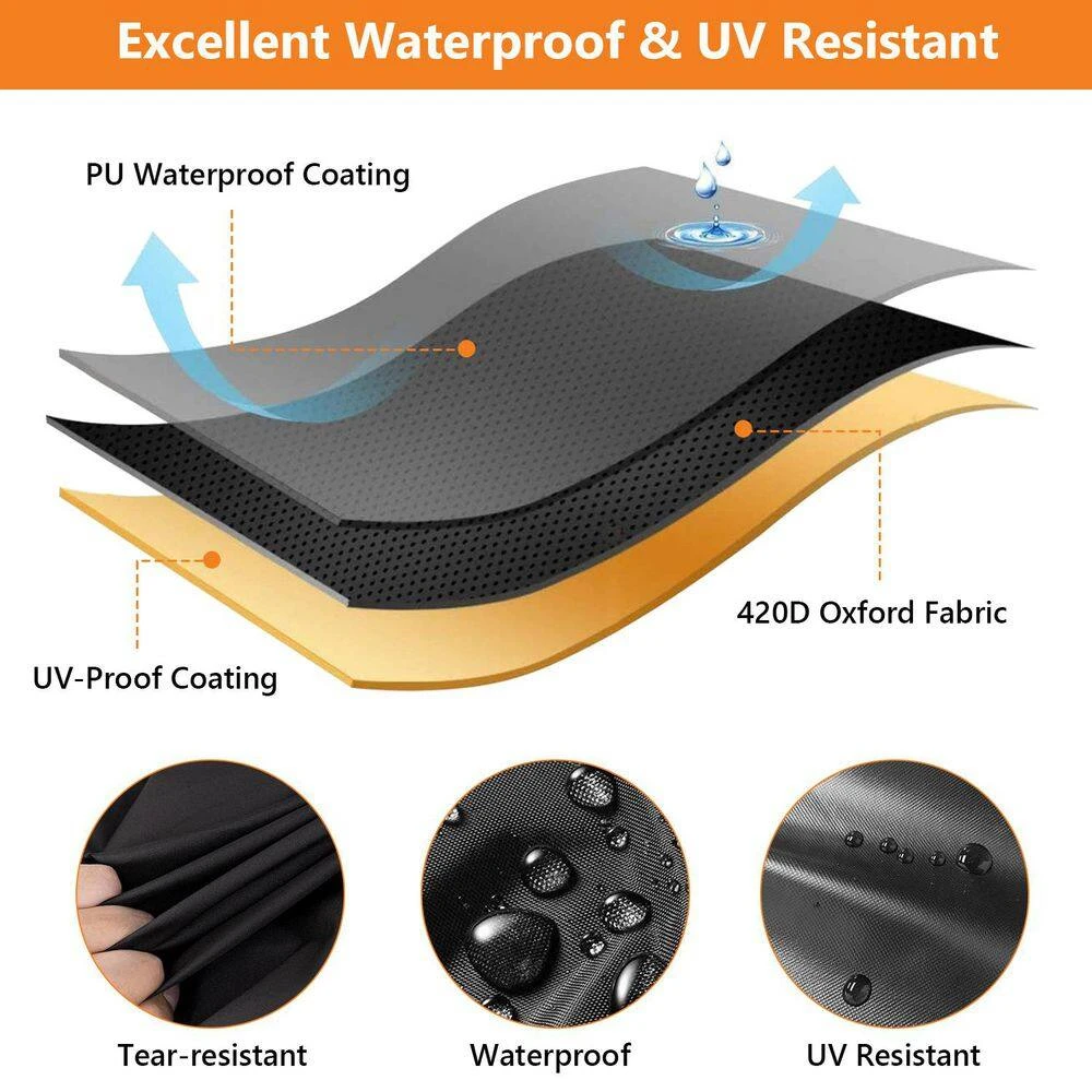 - Designed for the diverse climates of the U.S., the 420D high-density Oxford fabric with PU coating combines strength and flexibility; the 420D fabric resists wind-driven leaves, debris, and tears; and the PU coating creates a 100% water-resistant barrier against heavy rains, thunderstorms, and even melting snow, making it strong enough to withstand the elements, yet lightweight and easy to manoeuvre, making it dependable for use year-round, from the West Coast to the Northeast.