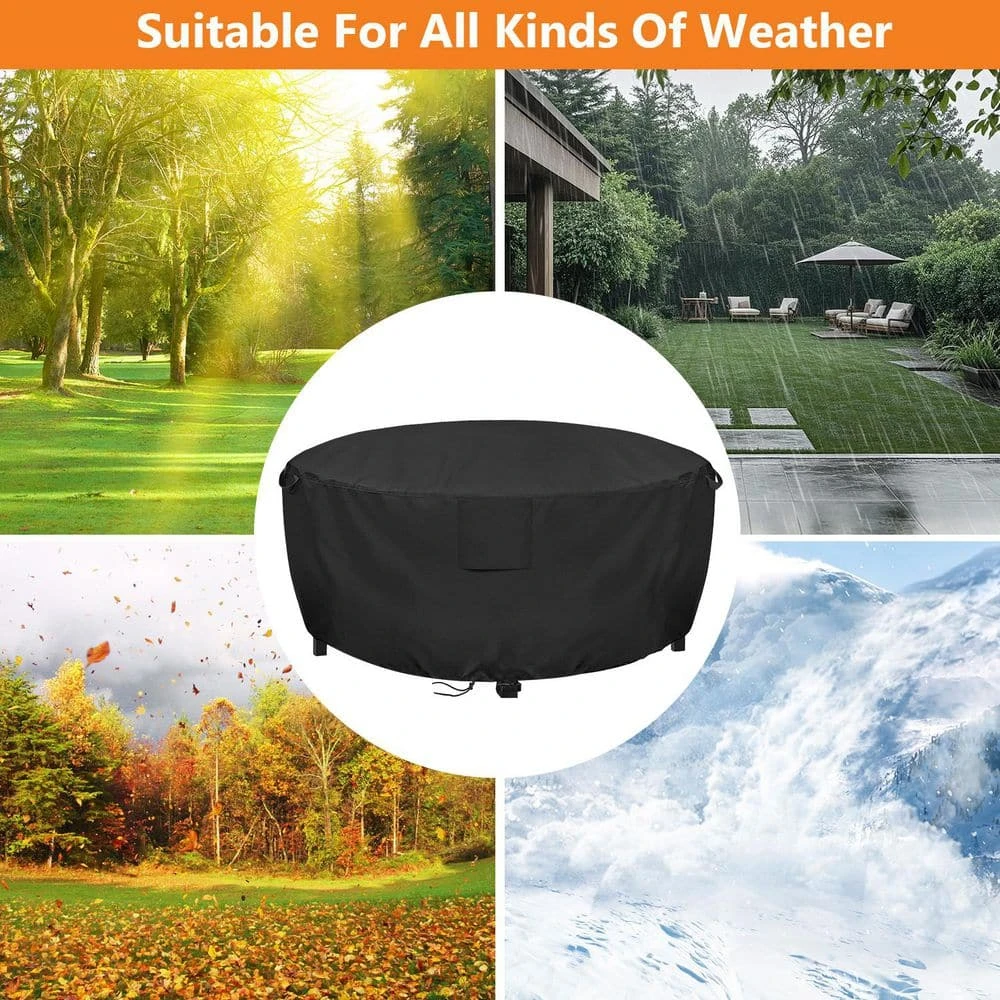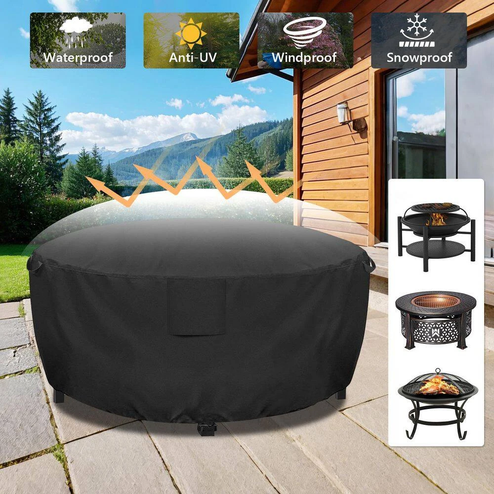This black 420D coated PU round fire pit cover is ideal for guarding your outdoor
