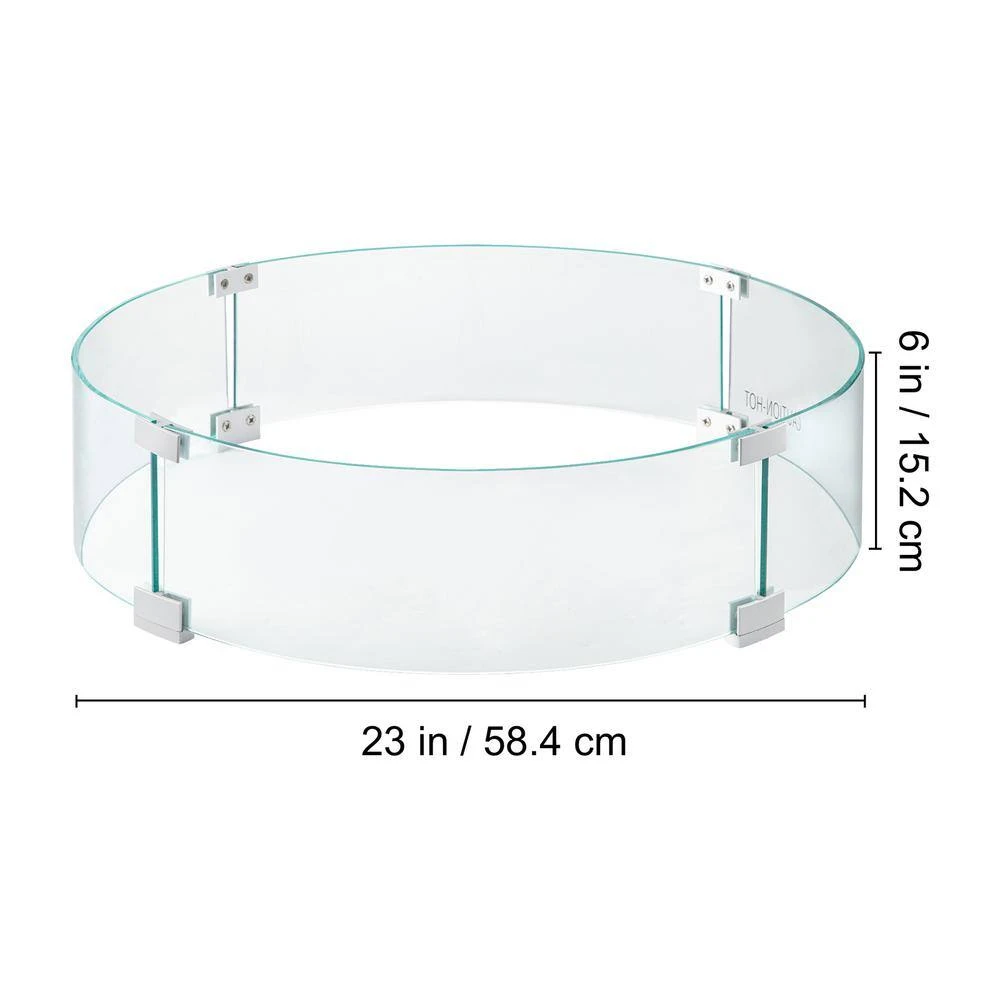 The VEVOR Fire Pit Wind GuardFire pit flame guard effectively reduces wind compact on fire table and greatly fit in your patio or garden. It shelters the flame while providing a safety barrier for users along with polished edges. Easy set and use with necessary accessories. Long lasting durability assured with tempered glass and aluminum alloy corner brackets.