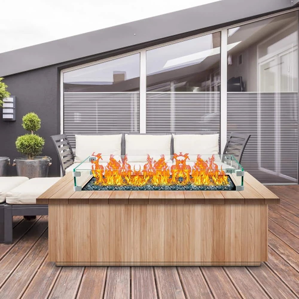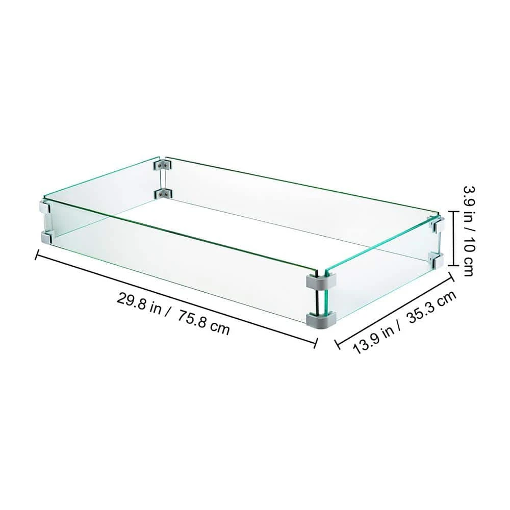 - Protects Flames On Windy Days:29.5 in. x 13.6 in. x 4 in. clear tempered glass wind guard fence to fit around your fire table and assists to block breeze to compromise your fire and enjoy a steady flame, it also assists in maintaining lower flame heights and consumes less fuel, a must-have fire pit supply to blend in your patio and garden