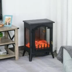 HOMCOM 15.25 In. Freestanding Electric Fireplace Stove With Overheat Protection 750W/1500W In Black