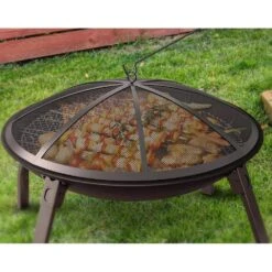 Outdoor Fire Pit Cover Grate Log Round 28 In. With Base Firewood Grates Support In Black For Outdoor