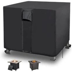 Gas Fire Pit Cover Rectangular Waterproof Windproof Anti-UV Heavy Duty Patio Furniture Covers, Black
