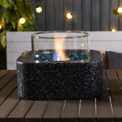 16.30 In. W X 11.00 In. H Concrete Square Bioethanol Or Gel Gas Tabletop Fire Pit In Black