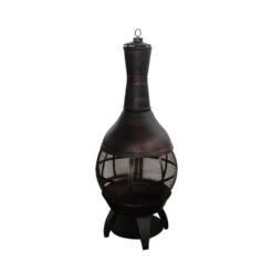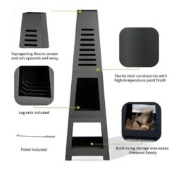 57 In. Black Steel Outdoor Wood Burning Fire Pit Chiminea With Log Grate And Poker 360-Degree View