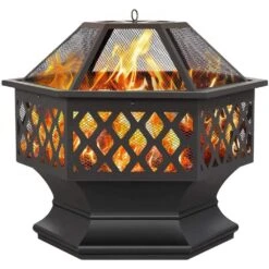 28 In. 50000 BTU Black Square Steel Propane Outdoor Fire Pit Table With Steel Lid And Rocks