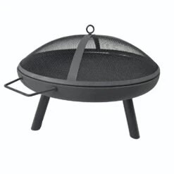 28.74 In. Round Portable Wood Burning Fire Pit Grill With Mesh For Backyard, Party In Black