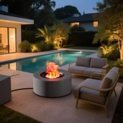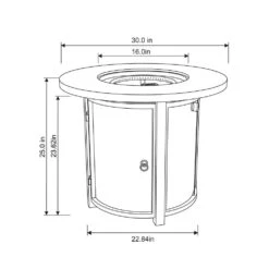 30 In. W Round 40000Btu Black Steel And MgO Tabletop Propane Outdoor Fire Pit Table With Lava Rocks