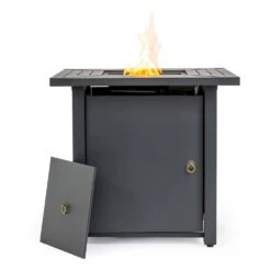 30 In. 50000 BTU Black Square Steel Propane Outdoor Fire Pit Table With Steel Lid And Rocks
