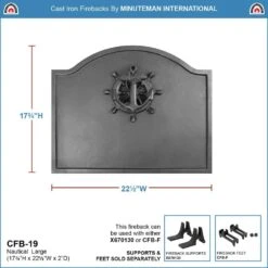 17.75 In. Tall Black Traditional Large Plain Design Fireback