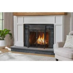 50 In. Black Steel Kempston Park 3-Panel Fireplace Screen With Doors