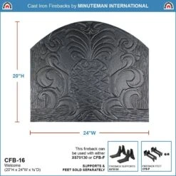 24 In. L Black Cast Iron Welcome Fireback With Pineapple Design