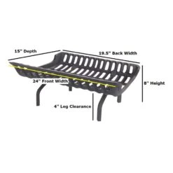 24 In. L X 15 In. D Black Sturdy Tapered Hearth Grate For Logs