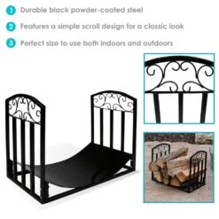 12.25 In. Iron Filigree Firewood Rack With 4-Piece Fireplace Tools Set